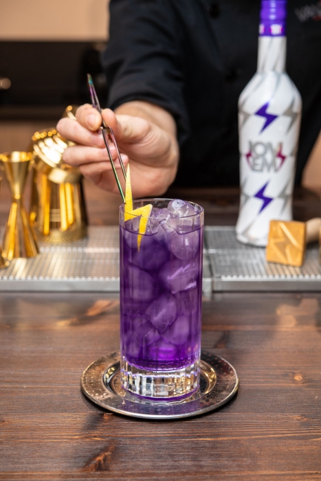 Come ad esempio il Thunder Tonic, connubio del nettare viola IOVEM da bere miscelato con elementi come miele, mosto d’uva, zenzero, limone e acqua tonica, un cocktail contraddistinto dal naturale colore viola proveniente dall’enocianina degli acini”.