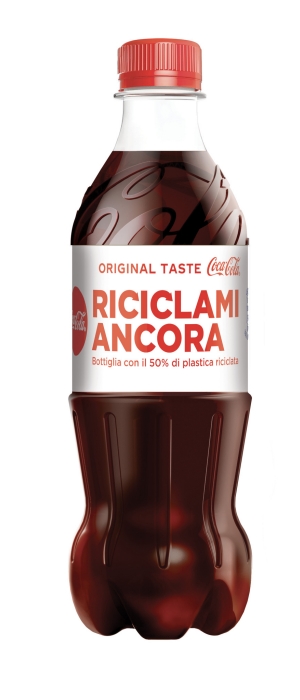 Sono realizzate con il 50% di plastica riciclata (r-PET) tutte le bottiglie di Coca-Cola, Coca-Cola Zero Zuccheri, Coca-Cola Senza Caffeina, Coca-Cola Light Taste, Coca-Cola Gusto Limone Zero Zuccheri da 450 ml, Fanta Original da 450 ml e FUZETEA da 400 ml.