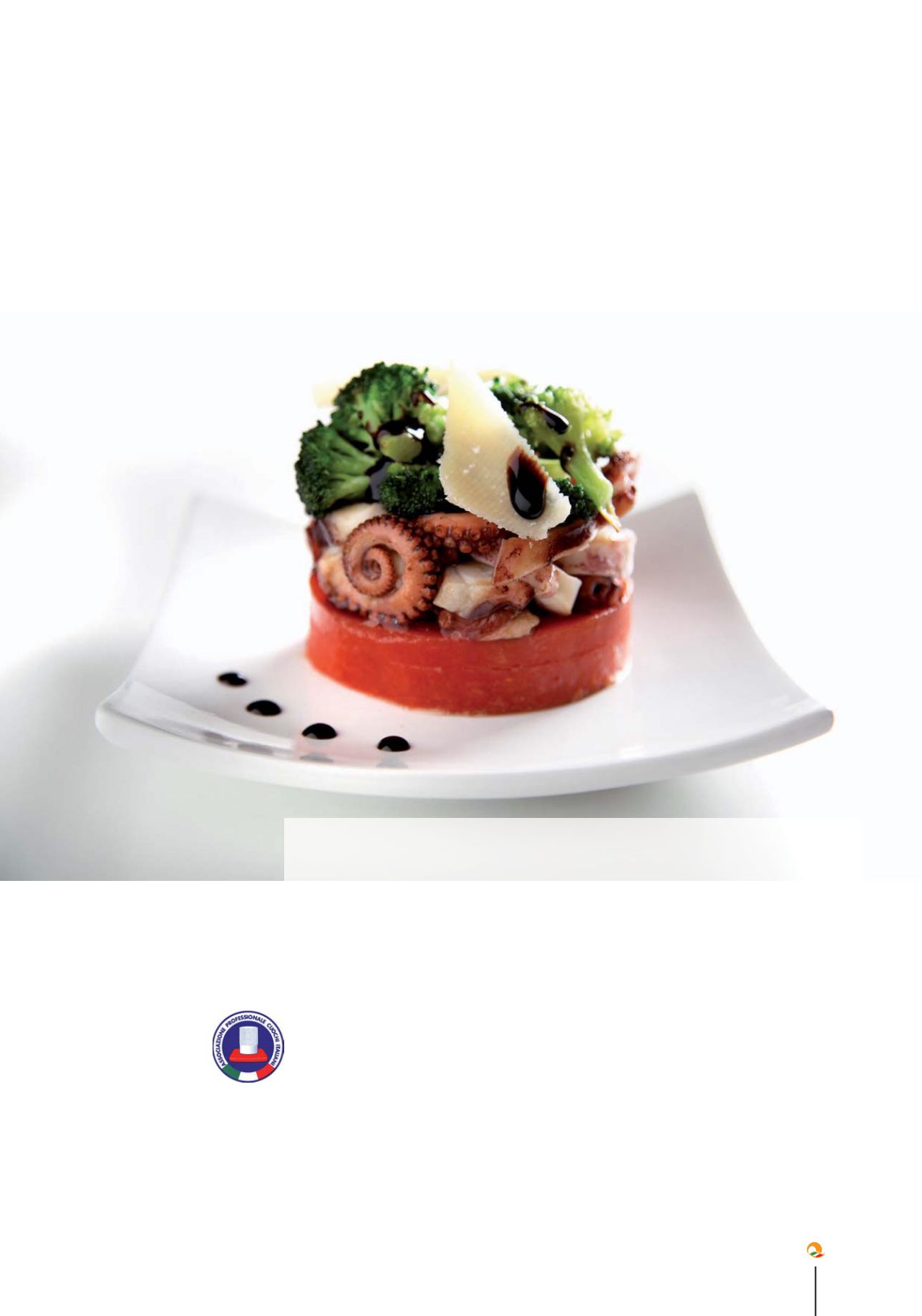 g. 260 calamari; g. 240 polpo; n. 2 fogli gelatina animale; g. 80 pomodorini in polpa; g. 60 cime di broccoletti; g.