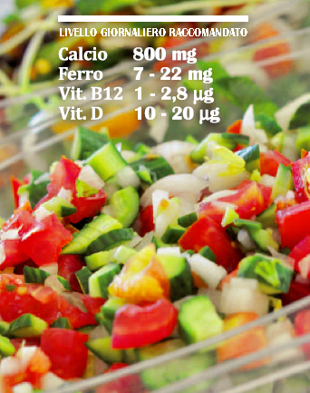 Una giornata di questo tipo avra livelli di: calcio >500 mg; ferro >18 mg; vit. D >1 μg; vit. B12 >0,3. Il principio di variare ogni giorno la scelta alimentare vale sempre a prescindere dalla dieta che si segue sia essa vegana che mediterranea. La varietà e il metodo migliore per prevenire e combattere carenze nutrizionali.