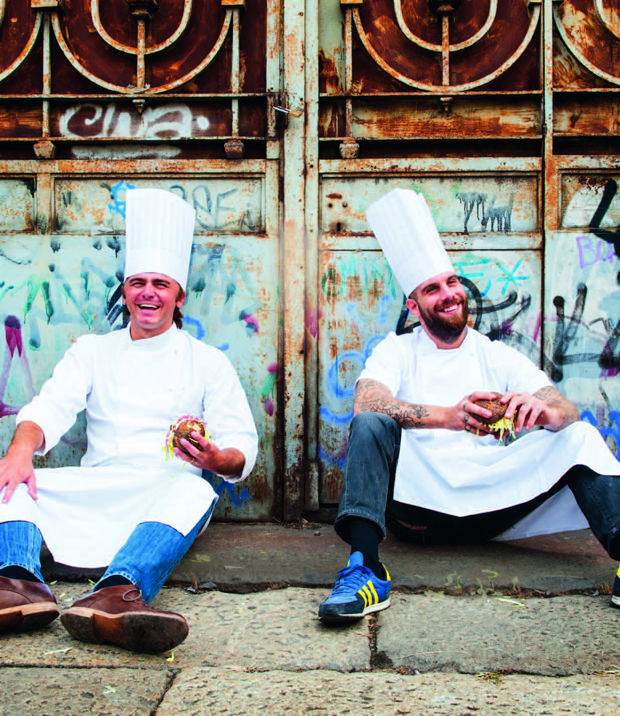 La copertina di questo mese non passerà inosservata. E non piacerà a tutti. Il forte contrasto tra la candida purezza della divisa degli chef e la ruggine e i graffiti sul cancello e sul muro, colpisce e non può lasciare indifferenti. E proprio in questo sta la bellezza della foto. Che piaccia o no, il cuoco che addenta un panino di propria creazione, seduto per terra, simboleggia una delle tendenze più in voga del momento: la scelta di puntare sul cibo di strada. È un trend che si inserisce in un fenomeno più generale, quello dell’abbandono della vecchia visione per cui “cucina di qualità” è sinonimo di proposta d’élite, di piacere per pochi. Al contrario oggi il vento soffia nella direzione dell’allargamento del numero di consumatori/clienti. Ne sono esempi la scelta di cuochi famosi di proporre panini gourmet e di parlare al grande pubblico attraverso la televisione, così come i molti stellati che a fianco del proprio locale principale ne hanno aperti altri, all’insegna della “qualità più abbordabile”, sia in termini di proposte che di costi. Eugenio Roncoroni e Beniamino Nespor, a cui dedichiamo la copertina, sono l’emblema dei nuovi chef cosmopoliti, che puntano su una cucina melting pot, dando dignità alla (un tempo) bistrattata cucina di strada, assurta oggi al rango di street food. Che, guarda caso, suona meglio…