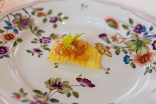 Una rivisitazione della bruschetta: pomodoro tagliato a concassè, condito con olio, sale e arancia