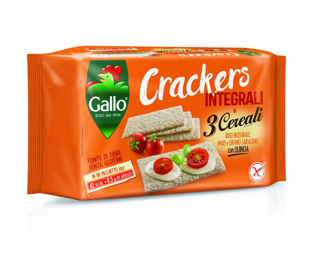 Riso Gallo, tra le più antiche riserie italiane e d’Europa, si conferma attenta alle esigenze di consumo in continua evoluzione presentando una linea di crackers integrali e senza glutine, capace di abbinare la leggerezza del riso al benessere dei cereali. I crackers integrali Riso Gallo sono adatti a celiaci e vegani: sono senza glutine, senza lievito, a basso contenuto di grassi. Rappresentano anche una buona fonte di fibre, senza rinunciare a una croccantezza extra: una gustosa innovazione nel mondo dei prodotti alternativi al pane.