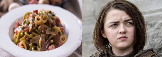 La piccola Arya diventa di stagione in stagione una guerriera temibile. Il suo aspetto da gracile ragazzina non deve trarre in inganno. A lei associamo “Gramigna con funghi e salsiccia”, un vero e proprio classico, una pasta che già nel nome richiama l’erba infestante che non muore mai, per un piatto dove il gusto esplode quando meno te lo aspetti, così come Arya all’imporvviso fa fuori gli antagonisti spuntando un altro nome dalla sua lista… perché valar morghulis…