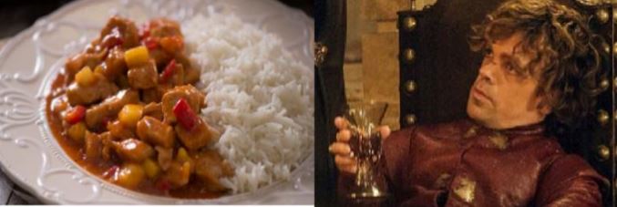 Un Lannister paga sempre i suoi debiti e ognuno di noi si affiderebbe a Tyron. Il suo acume e la sua lingua riescono sempre a trarlo d’impaccio dalle situazioni più bizzarre e nonostante la bassa statura è uno dei personaggi più “alti” di tutto GoT. Il piatto che Tyron ordinerebbe nelle taverne, ovviamente accompagnato da fiumi di buon vino di Volantis, Lys o Arbor, è il “Tacchino agrodolce e basmati” perché tutto si può dire di lui, salvo che non si faccia sedurre dai piaceri di un buon pasto, specie se caratterizzato dai sapori forti, contrastanti e seduttivi.