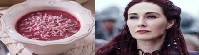 La sacerdotessa, con i suoi poteri eccezionali, è una donna di indubbio fascino e potere. Il colore che la contraddistingue è il rosso, dagli abiti ai capelli, il fuoco e il vessillo sotto cui procede tra un rogo di innocenti e un altro. Il piatto che la rappresenta è ovviamente la “Zuppa di rape rosse e zenzero”, con questo sapore deciso ed esotico che diventa una “calda” dipendenza.