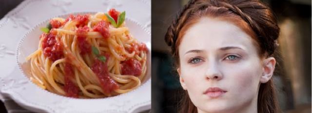 Ok, Sansa non è sicuramente tra i personaggi più amati, così donnina indifesa non ispira certo grande simpatia. Eppure anche lei sta cambiando, con l’arrivo dell’Inverno sembra che la primogenita Stark inizi a capire quale posto vuole avere nel macabro gioco del trono. Per ora però resta un piatto semplice, lo “Spaghetto al pomodoro”, buono se fatto bene, in grado di colpire il palato ma una ricetta senza troppi fronzoli.