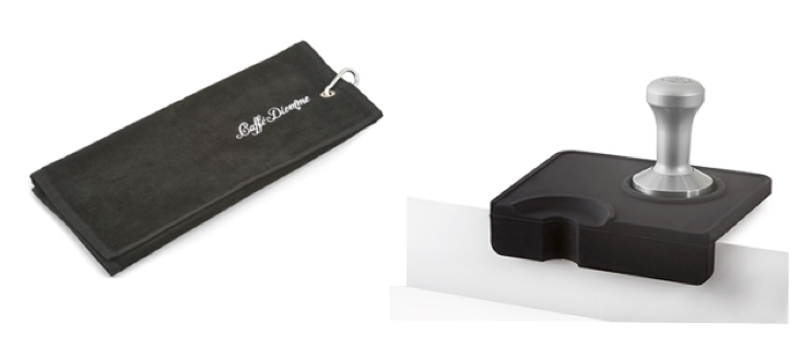 Oltre all’equipaggiamento da “indossare”, la Diemme ha messo a punto anche un kit professionale di oggetti, quali un telo bar in spugna, applicabile con un gancio al pantalone o al grembiule dell’operatore, un tappetino portafiltro in gomma e un tamper (pressino) in acciaio inox con impugnatura ergonomica. Ogni gesto e ogni attrezzatura possono infatti incidere sul profilo della bevanda in tazza: ecco l’importanza di uno strumento apparentemente elementare, ma in realtà non così diffuso nei locali, come è appunto il tamping mat, che serve come base d’appoggio per una corretta pressatura della dose di caffè, quando si prepara un espresso. In particolare questo tappetino consente di appoggiare il portafiltro sull’angolo, lasciando i beccucci al di fuori del banco e ottenendo un bilanciamento perfetto del gruppo. Inoltre il tamping mat protegge il bancone, previene il danneggiamento dei beccucci del portafiltro e consente al barista di non sforzare eccessivamente i polsi, pressatura dopo pressatura.