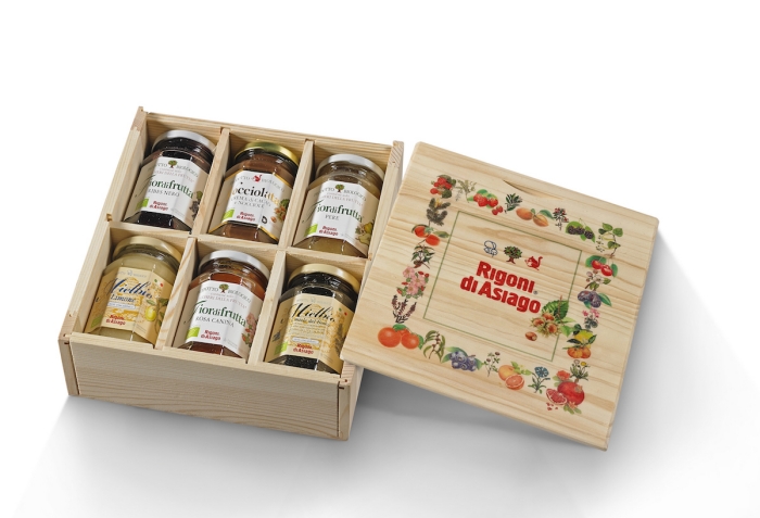 Tanti favolosi gusti di Fiordifrutta (più di venti!), Mielbio, il nettare Tantifrutti in tre buonissime varianti, la Nocciolata, con o senza latte e Dolcedì, lo zucchero delle mele, perfetto anche per chi ha problemi con lo zucchero, vi aspettano pronti a diventare un elegante confezione in cui racchiudere le vostre scelte preferite. Scatole in legno o trasparenti, cesti in tante misure e tanto altro sono perfette per i prodotti Rigoni di Asiago che giudicherete i più accattivanti per soddisfare il gusto di chi li riceverà in dono.