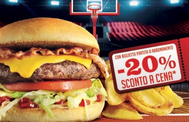 E per tutta la stagione, al suono della sirena, il divertimento prosegue negli oltre 170 ristoranti della catena con il “Quinto Quarto” di Old Wild West, il modo più ghiotto per prolungare il piacere di stare sugli spalti e chiudere la serata all’insegna dello sport e del buon cibo. Così, dopo le partite di campionato, la domenica a cena, chi esibirà il proprio abbonamento con lo speciale gettone o il biglietto della partita, potrà approfittare di una cena con l’eccezionale ribasso del 20 per cento su tutto il menù Old Wild West.