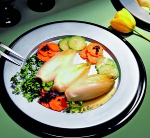 Ma iniziamo il nostro viaggio culinario partendo da due ortaggi che proprio qui hanno avuto origine, ovvero l’insalata belga, o endivia, e i cavolini di Bruxelles. Queste verdure spesso vengono utilizzate come contorni per i primi piatti insieme alle patate, preparate in tanti modi, anche come zuppe. E sempre per ricette a base di verdure ecco lo stoemp, fatto con patate bollite e verdure di vario tipo e il chicon au gratin, l’indivia gratinata. Infine come contorni o ingredienti di diversi piatti sono anche utilizzati la cipolla e lo scalogno, soprattutto nei piatti di ispirazione francese, e gli asparagi, tra cui spiccano quelli “alla fiamminga”. Proprio su questa dicotomia tra piatti di ispirazione francese, provenienti perlopiù dalla francofona Vallonia, e di ispirazione fiamminga, dal Nord del paese, si sviluppa la gastronomia belga, un tempo “creduta”, ma solo creduta mi raccomando, una emanazione di quella degli ingombranti vicini transalpini.