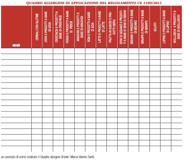 DALLA TRACCIABILITÀ ALLA COMUNICAZIONE Se un ristoratore sa alla perfezione cosa contiene ogni suo piatto, comunicarlo agli avventori non è difficile. «Il mio suggerimento – spiega Valerio Sarti – è di preparare un quadro allergeni, una tabella in cui indicare, con semplici crocette, le corrispondenze ricette/allergeni. La tabella va aggiornata ogni volta che si cambia il menù o si sostituisce qualche ingrediente, ma permette di creare un archivio allergeni personalizzato semplice da utilizzare. La comunicazione al cliente è l’atto finale di questo processo e può essere spinta - se sei convinto del tuo operato e vuoi proporti come locale di riferimento per gli allergici che vogliono mangiare fuori – o ridotta al minimo. In base alla mia esperienza, per ora le autorità di controllo si accontentano di trovare il libro unico degli allergeni e l’indicazione “per ulteriori informazioni rivolgiti al personale di servizio”. Credo che non stiano insistendo troppo su questi aspetti per dare tempo alle aziende di adeguarsi, ma che sia solo questione di tempo e quindi è bene che le società di ristorazione inizino a strutturarsi per garantire agli allergici la massima tutela possibile. A mio avviso, come a inizio degli anni 2000 è stato chiesto ai ristoratori di investire sulla sicurezza puntando sugli aspetti microbiologici, questa epoca dovrebbe essere quella dell’ampliamento di questo approccio agli allergeni, che sono molto più delicati e complicati da gestire».