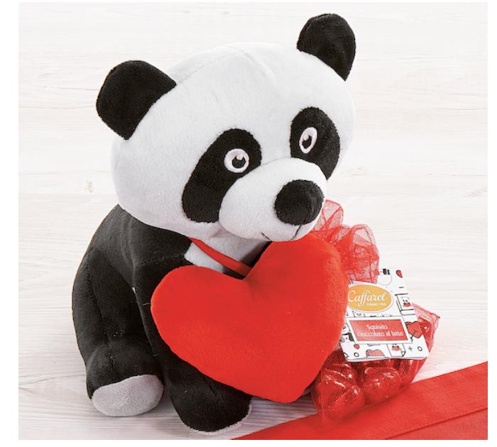 Per trasmettere con un solo gesto l’amore per la propria persona speciale non possono mancare i peluche, teneri e morbidi, perfetti sia per i più giovani che per gli adulti. E chi l’ha detto che solo un orsetto può essere portatore d’amore? Che dire di un panda? Questo delizioso peluche della Linea Panda Love porta al collo un dolce cuore rosso e golosi cuori di finissimo cioccolato al latte. Rappresenta un’idea dolce e simpatica per un regalo da abbracciare quando si hanno le farfalle nello stomaco, la testa tra le nuvole e quel senso di leggerezza che ci fa sentire come se potessimo volare.