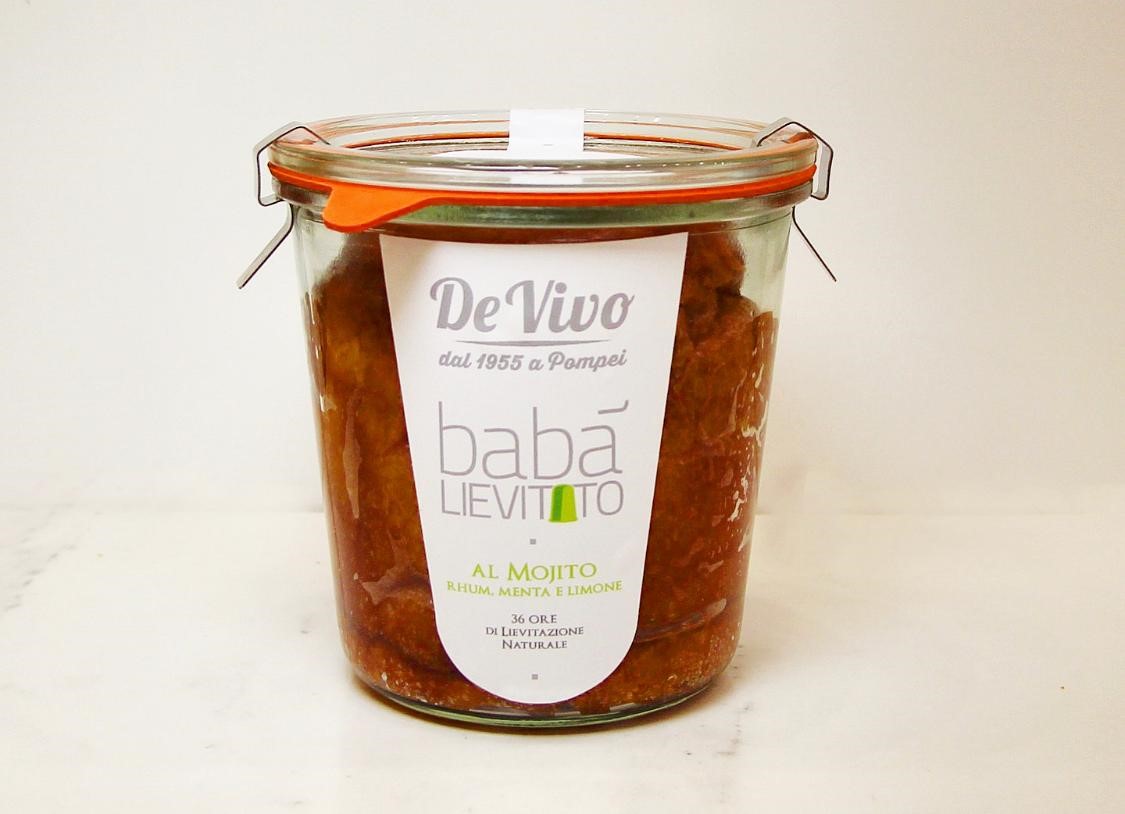 Si tratta di un lievitato che viene cotto in un barattolo ad hoc di vetro, che permette di mantenere inalterate le caratteristiche di elasticità e godibilità della pasta del babà, facile da portare e con una durata di conservazione più lunga, senza l’aggiunta di conservanti.