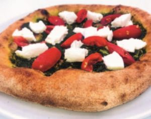 E se le pizze gourmet sono molte, Pasquale Moro ne propone una composta da ingredienti semplici ma in perfetto accostamento, la Pizza Basilico: “Si fa una crema di basilico e la si stende come fondo, si mette del Pachino sbollentato a pezzetti e, in uscita, mozzarella di bufala e qualche foglia fresca di basilico”.