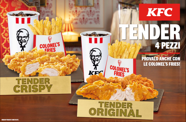 Parte domani, 6 febbraio, la nuova campagna di KFC – Kentucky Fried Chicken, dedicata al Tender, il filetto di pollo che si può gustare nelle versioni Original Recipe, la famosa ricetta segreta di KFC con 11 erbe e spezie, e Crispy, dall’incredibile croccantezza. Il Colonnello Harland Sanders è al centro della campagna, che segna l’inizio di un racconto seriale il cui svolgimento nel corso del 2020 vedrà protagonista sempre il fondatore del brand. In questa occasione, per raccontare le due versioni del Tender, si sdoppia in un surreale dialogo tra le due versioni di se stesso: il Colonnello originale e il Colonnello “croccante”, con capelli e sopracciglia ricci. Entrambi rigorosamente nell’impeccabile completo bianco e cravattino nero.