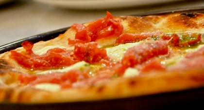 Nel menu di Eccellenze Campane e Verace Sudd la sezione dedicata “Pizza nel ruoto” assume dunque il volto della tradizione, del buono fatto come una volta con un tocco di innovazione suggerito dalle sapienti mani esperte dei mastri pizzaioli: pizze rosse, classiche come la Marinara, ma anche molto saporite, come la Borgo Marinari con le alici di Cetara; oppure la Tribunali, con filetto di pomodoro San Marzano Dop, mozzarella di bufala, olio al basilico e in uscita, pecorino romano. E ancora, focacce bianche come la Sorrento, con il pomodoro che dà il nome alla pietanza e la stracciata di bufala, oppure la focaccia Puglia, con la burrata pugliese rigorosamente in uscita dal forno, e molto altro.