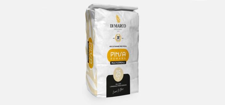 Pinsa Romana Multicereali contiene il classico mix Di Marco di pasta acida e farine di frumento, riso e soia, a cui sono state aggiunte farine di avena, segale, malto d’orzo, orzo e semi di zucca, di girasole e di lino, che conferiscono al prodotto un gusto rustico e integrale. La farina Multicereali è senza OGM, coloranti, conservanti e additivi, non contiene ingredienti di origine animale ed è quindi idonea a soddisfare anche le esigenze dei clienti che seguono una dieta vegana.