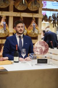 Pietro Simone, master brand ambassador della cantina reggiana Albinea Canali (Gruppo Cantine Riunite & Civ) propone di degustare il salame e la spalla cotta Parmacotto Selection con 1936 Lambrusco Emilia Igt biologico. Due idee di aperitivo o antipasto, proposte in fiera con Ivan Albertelli dell’Hostaria Da Ivan, consistono in un abbinamento con crostini di pane nero, salame e caprino e crostini di pane bianco, stracciatella, salsa verde e spalla cotta.