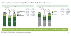 Guardando alle occasioni di consumo, il Retail (ristorazione all’interno di supermercati o centri commerciali) si dimostra il formato più dinamico in questa fase di ripresa economica, evidenziando un incremento del +27.6% dall’anno precedente (CAGR 20-21). A doppia cifra anche l’incremento per gli esercizi commerciali situati in destinazioni turistiche (Travel) o punti di intrattenimento (Entertainment).
