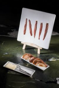 La ‘fantasia culinaria’ al 142 Restaurant la si trova nei piatti del menù: un divertente gioco tra riferimenti all’arte e scomposizione dei nomi. Alcuni esempi? Giusto per iniziare ‘Omaggio a Lucio Fontana’, una composizione con acciughe del Cantabrico, pane tostato e burro, oppure, tra i secondi, ‘Ten-Taco-Li’, delizioso polpo arrosto al tè nero affumicato, maionese di acqua di polpo, crema di patate, pomodoro secco e tortilla.