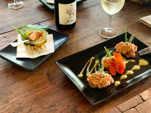 Ricette equilibrate e ben presentate che cambiano con il passare delle stagioni. “Abbiamo la fortuna di essere immersi nella natura con alimenti che rispettano la circolarità e la biodiversità, il nostro compito è quello di esaltarli usando tecniche di cottura e di lavorazioni poco invasive”, aggiunge Dylan Buttu. In brigata anche Tommaso, giovane e talentuoso studente: “Fare esperienze di questo genere è fondamentale per chi, come me, ha deciso di basare una futura professione in cucina. Ogni piatto ha una preparazione e un percorso a sé, elementi imprescindibili da conoscere e imparare”.