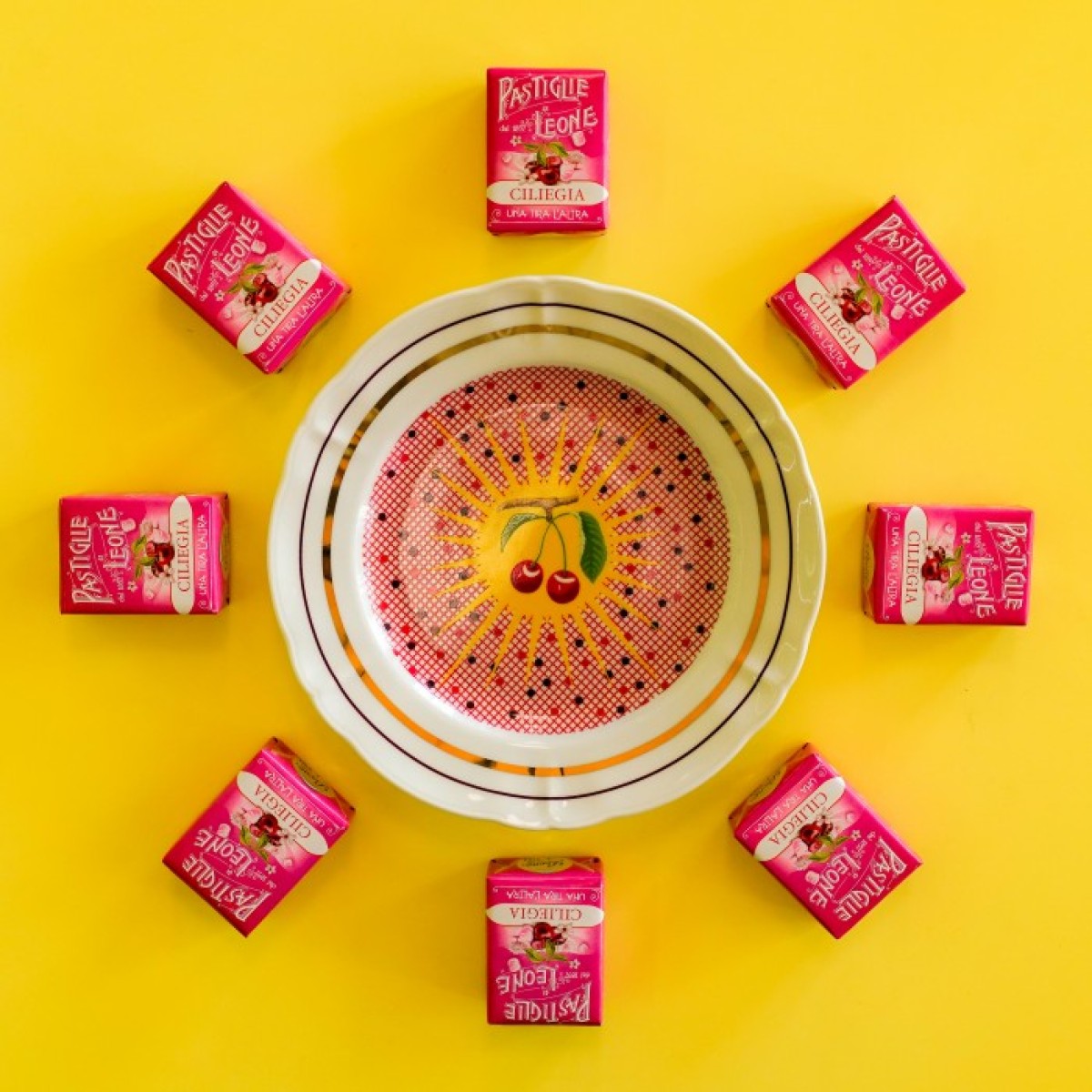 Leone presenta il nuovo gusto ciliegia delle pastiglie che l’hanno resa famosa in tutto il mondo e nel contempo avvia una partnership con Bitossi Home selezionando un piatto speciale realizzato dal designer Sam Baron.