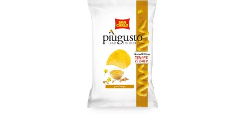 Piùgusto gusto Senape sarà disponibile nei formati da 50, 70 e 150 gr e affiancherà gli altri gusti della gamma dei sapori: Vivace, Lime e Pepe Rosa, Pomodorini di stagione e Porchetta alle erbe.