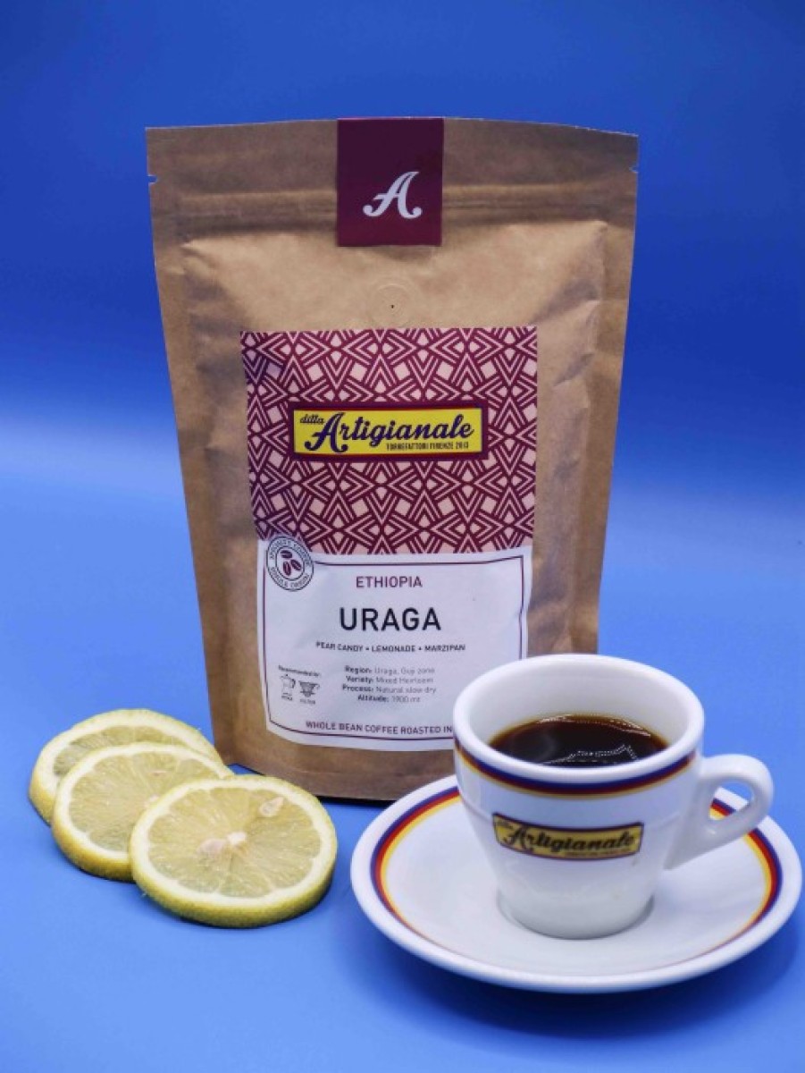Il caffè Uraga proviene dall’omonima regione etiope, nella zona di Guji e viene coltivato utilizzando varietà locali miste conosciute come Mixed Heirloom, che conferiscono al caffè una ricchezza e una complessità uniche. All’assaggio presenta una combinazione di sapori. Le note predominanti includono caramelle alla pera, che dona al caffè un gusto fruttato, la limonata, che aggiunge una nota fresca e vivace, e il marzapane, che offre al caffè una piacevole dolcezza dall’aroma leggermente nocciolato.