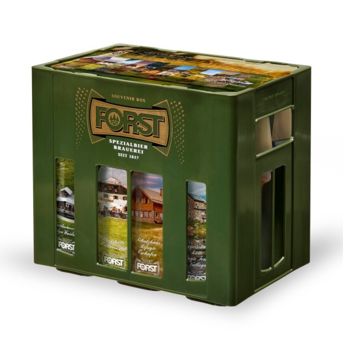 La Souvenir Box di Forst torna con una selezione di immagini di baite e malghe altoatesine che adornano e personalizzano le bottiglie della birra Kronen, a rimarcare il legame tra Forst e il proprio territorio, la natura e le montagne.