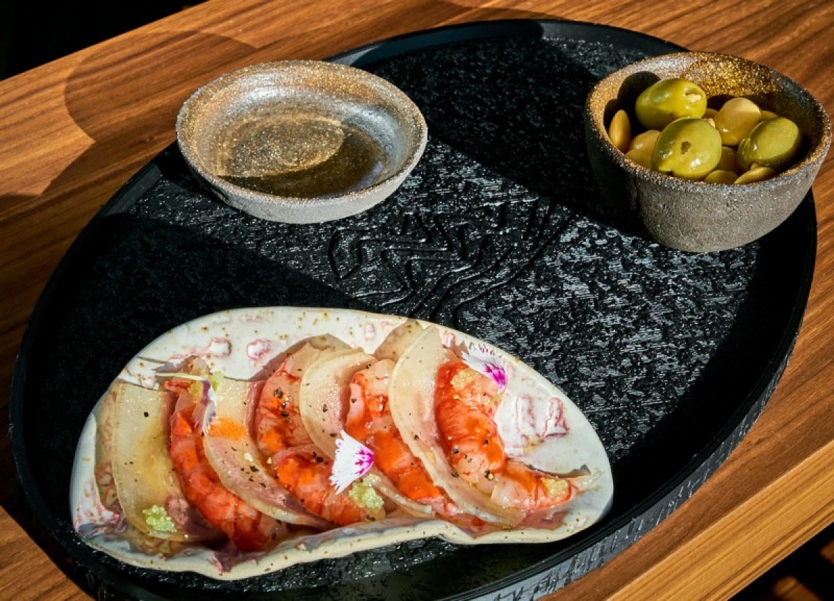 Per farsi un’idea: Tortillas di caviale e salmone, Tacos di genovese, O’ muss e gambero rosso, Paella, Frittatina alla carbonara, Pacchero ripieno al ragù e una variegata scelta di patatine aromatizzate (pecorino e tartufo, pulled pork Bbq, cheddar e jamon iberico…). Il menu si completa poi con primi piatti e, tra questi, si segnalano la Sogliola alla parmigiana o l’Animella alla scapece, mentre la lista dessert annovera preparazioni golose come quella che amalgama pane, gianduia, olio e sale maldon, ma non mancano all’appello nemmeno le Crêpes suzette, i Churros e la Millefoglie di croissant e fragoline.