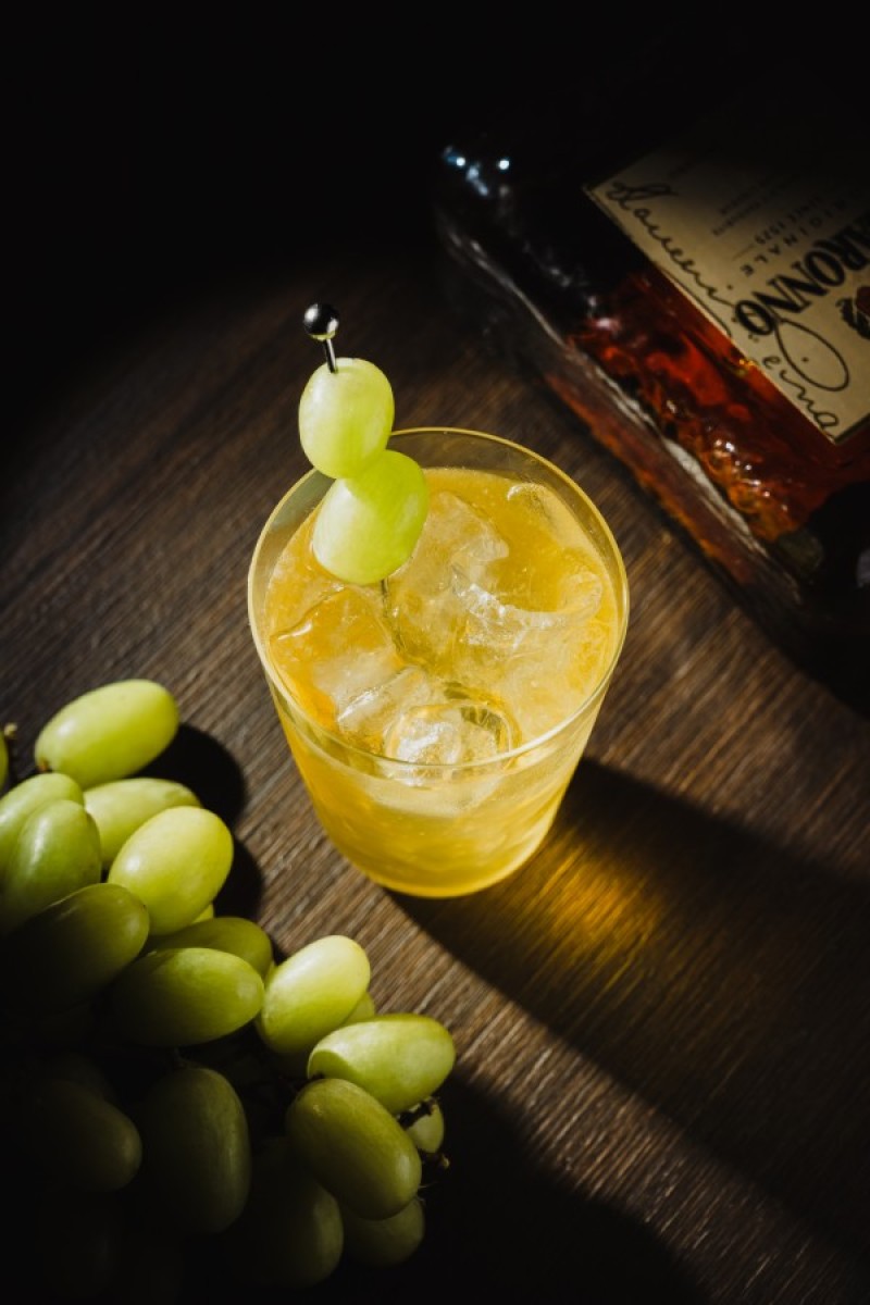 Dolce, mandorlato, agrumato e leggermente amaro con Disaronno Amaretto, Bitter rosso, pompelmo rosa, Cedrata Tassoni