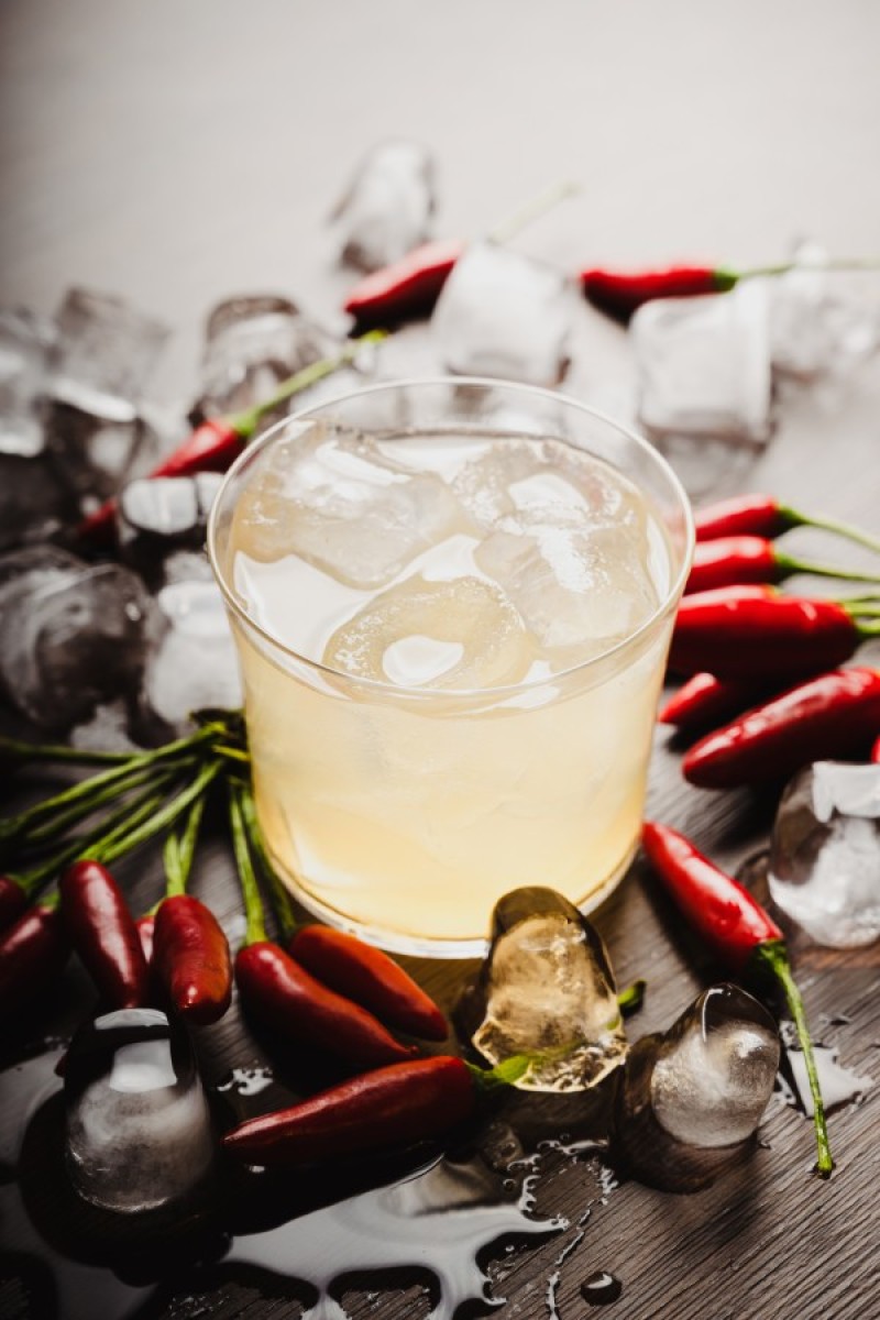 Dolce, fruttato e piccantino con Tequila Casamigos, liquore di albicocca, lime, cacao bitters, salsa piccante