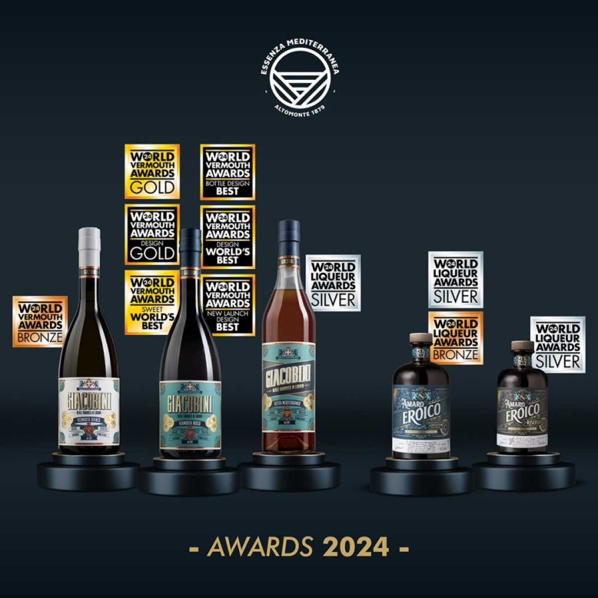 A fare incetta di premi al World Liqueur Awards sono stati anche altri prodotti del portfolio Essenza Mediterranea come Giacobini Vermouth Bianco Bio (medaglia di bronzo), Giacobini Bitter Mediterraneo (medaglia d'argento), Amaro Eroico (medaglia d'argento) e Amaro Eroico Riserva (medaglia d'argento).
