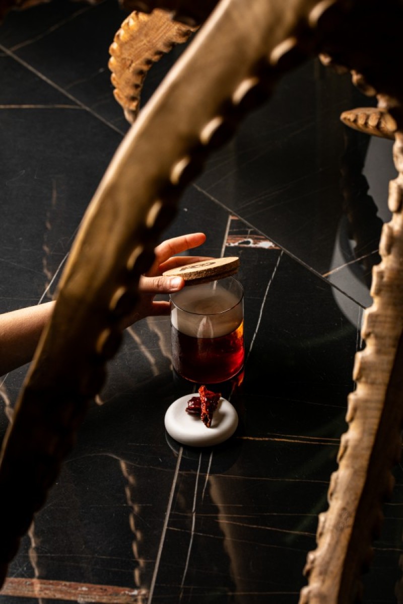 Per la nuova drink list Daniele Gentili e Francesco Cimaglia, general manager e bar manager, hanno trovato dodici parole identificative di altrettante caratteristiche del distillato. Così «Affumicato, minerale, sulfureo, marino, erbaceo, vinoso, legnoso, fruttato, oleoso, floreale, dolce e cereale» guidano il cliente alla scelta del cocktail più adatto ai propri gusti o voglie del momento. La lista è un gioco di equilibri fra drink più classici, come Emerald “Erbaceo”, variante sul Boulevardier, arricchito dalle note di timo, a quelli più sofisticati, come Kaori “Vinoso”, in cui si incontrano Giappone ed Europa, o Baltico “Marino”, con scotch whisky, borragine e nero di seppia.