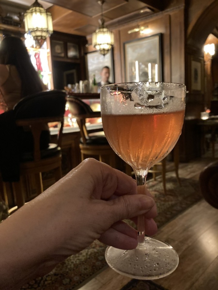 Tra i divani in pelle e i tavolini (alcuni realizzati con vecchi bauli da viaggio) si ci aspetta di scorgere un viaggiatore inglese giunto a Roma per il grand tour: e al Gran Tour ottocentesco infatti è dedicata la nuova drink list, frutto di sei mesi di studi e calibrazioni (cambia una volta l’anno e si presenta come un libro rilegato e messo in vendita, seguendo un trend sempre più consolidato) ideata dal bar manager Damiano Di Benedetto e dal suo staff. «Ogni drink è identificato da una spezia o un’erba o una botanica idealmente raccolta in giro per il mondo» ci spiegano.
