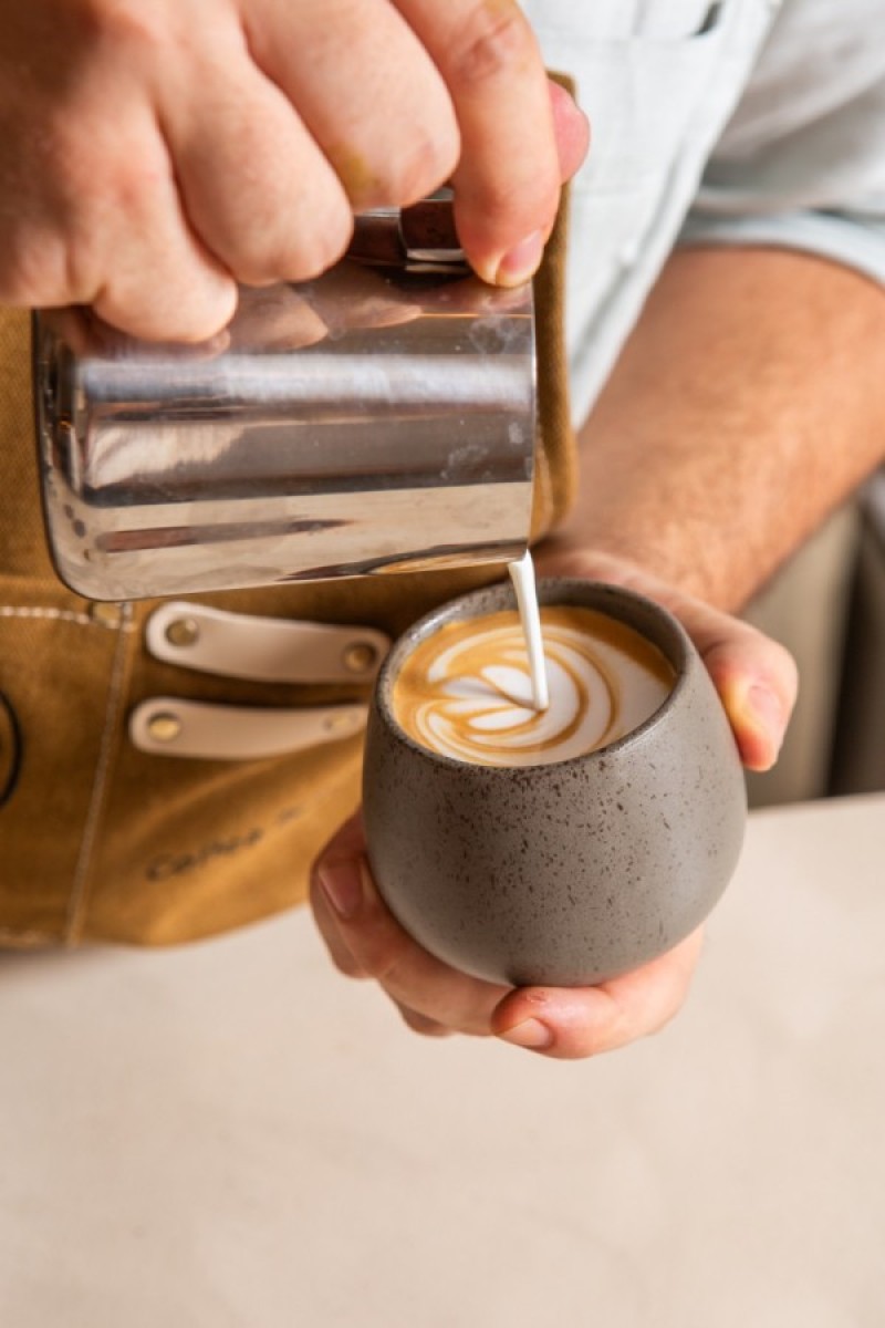 La caffetteria è affidata al latte artist Gianmarco Frosoni. Tutta l’offerta è studiata pensando sempre al caffè: non solo la parte di dolci e lievitati, ma anche il menu in generale. Come un fil rouge che lega tutti i momenti della giornata, dalla colazione alla cena. Curatissima e originale la linea della caffetteria, con monorigini importanti a rotazione: Slayer, Ceado Hero, Panama Geysha Don Elvira, una Tone per il brewing; inoltre è stato creato un blend ad hoc 100% arabica con bassa acidità (Brasile, Nicaragua, Colombia) per affiancare gli specialty, disponibile in espresso e in filtro). Sempre a rotazione, diverse chicche da roasters internazionali scovate personalmente da Giulia Mauceri e dal suo compagno Fabrizio Gallo durante i loro viaggi.
