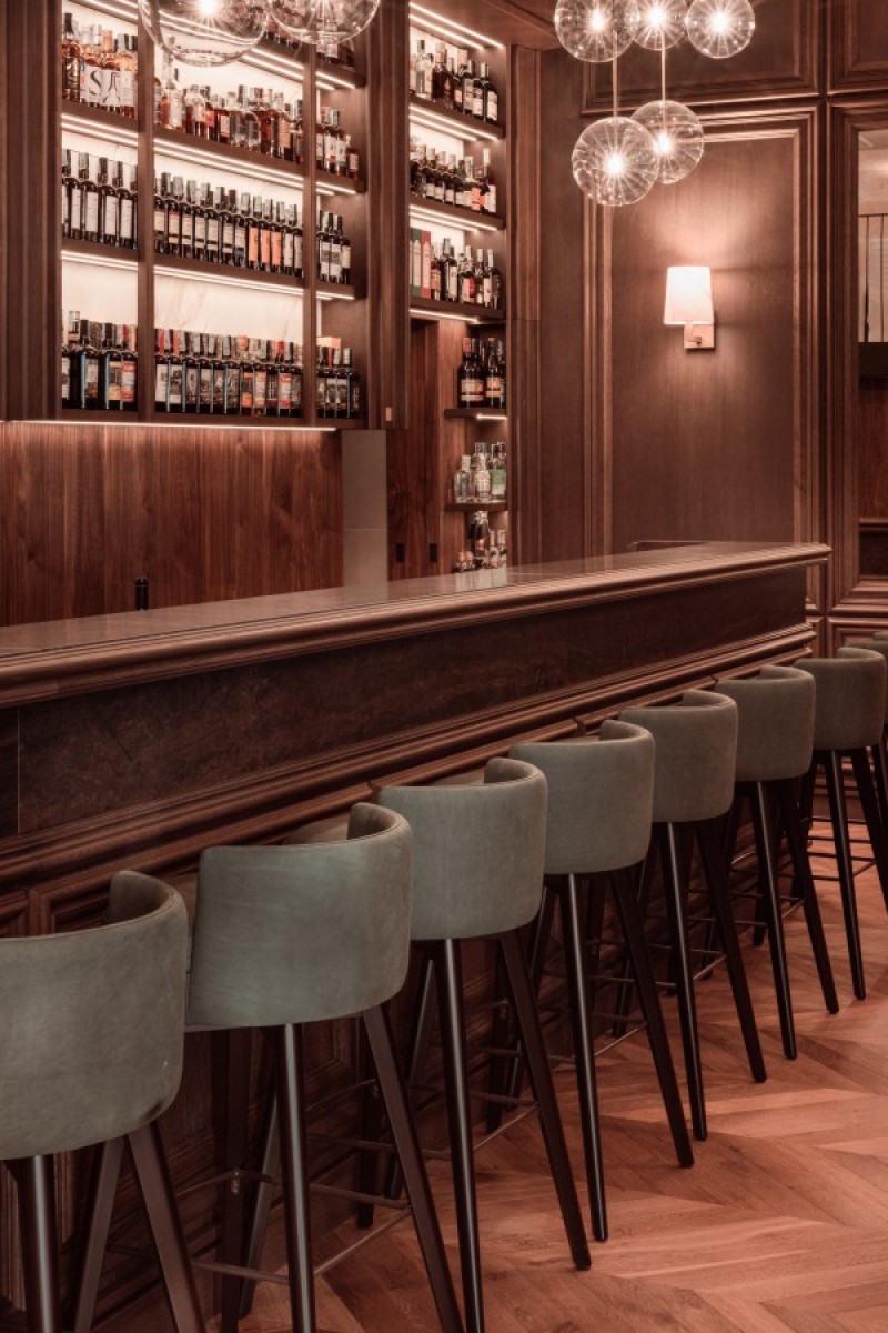 Il food è comprimario, non deve sovrastare il sapore di vini e spirits, ma rivestire un ruolo di piacevole pairing che si esprime, per esempio, con alcuni classici taglieri a base di salumi e formaggi pre-affinati, piattini con pesce crudo e ostriche. Non manca una cigar room per amanti del genere.