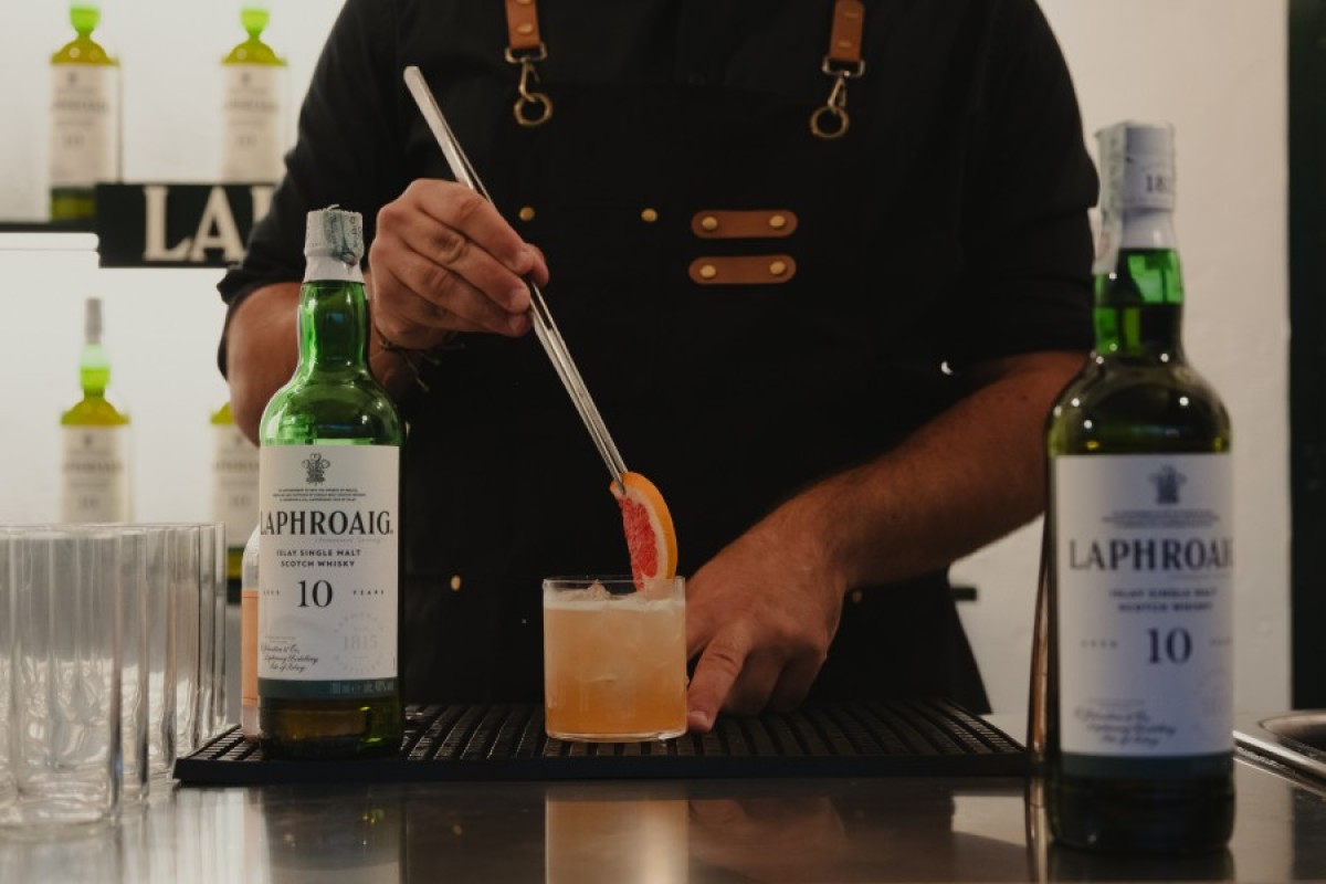 Alla serata è stato anche presentato il Laphroaig Mobile Bar, un bar itinerante pensato per la mixology che comparirà in una serie di iniziative volte a raccontare i sapori e i profumi del whisky, anche in miscelazione, come hanno evidenziato i due signature – semplici ma efficaci – proposti, di cui vi riportiamo le ricette.