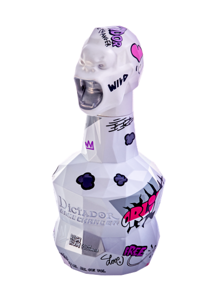 Più di un semplice contenitore, la bottiglia di Dictador per l'occasione diventa una dichiarazione di rottura con la tradizione, trasformandosi in un’opera senza tempo provvista della caratteristica testa di gorilla e dei colori della street art che decorano la superficie.