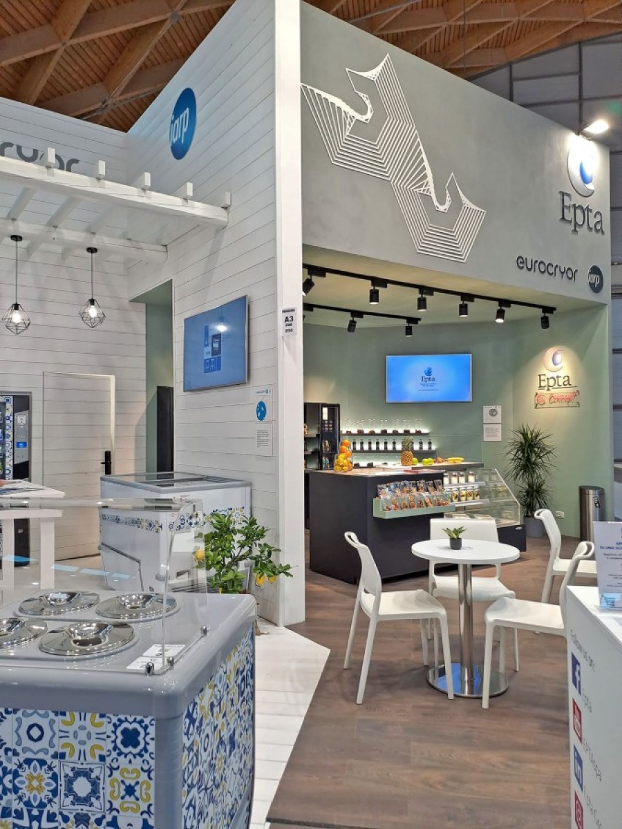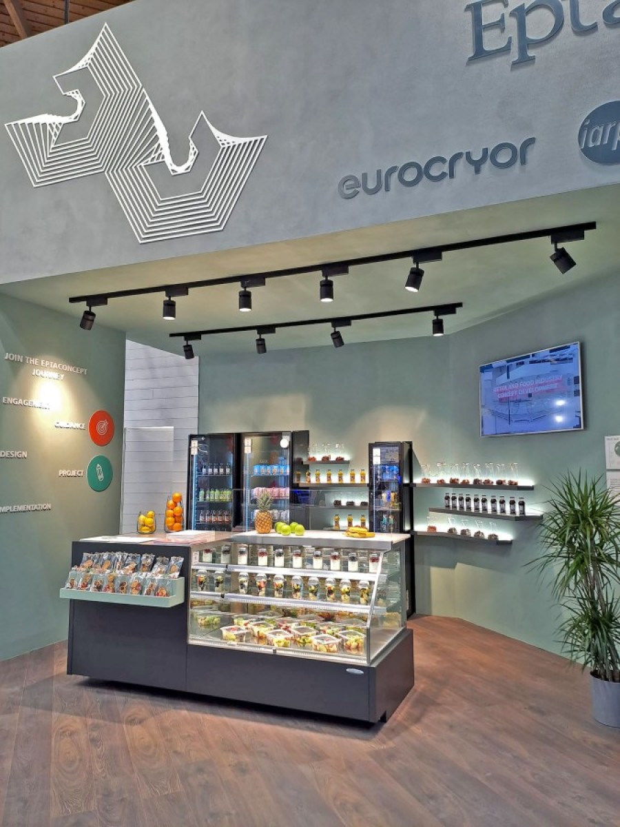 EptaConcept, specializzato nella progettazione di spazi su misura in funzione delle specifiche esigenze espositive, trasforma l’area indoor dello stand di Epta in un Fruit Bar. Il corner tematico rispecchia infatti una tendenza in crescita nel settore del fuori casa, che coniuga un’alimentazione salutare a uno stile di vita dinamico, per una proposta dall’evidente valore esperienziale. In dettaglio, la frutta fresca è custodita presso lo stand all’interno della vetrina Gemini Integral della linea Stili di Eurocryor, dotata di una tecnologia di refrigerazione di ultima generazione e presentata in una versione customizzata concepita per integrare in un’unica struttura spazio espositivo e operativo, in un connubio di eleganza e funzionalità. Progettato ad hoc per la fiera riminese, il lineare valorizza ulteriormente la qualità degli alimenti esposti combinando una disposizione orizzontale delle referenze, comodamente accessibili in modalità self-service, con l’installazione di postazioni complementari perfette per la lavorazione a vista delle materie prime e per la preparazione da parte degli operatori di centrifughe ed estratti a base di frutta.