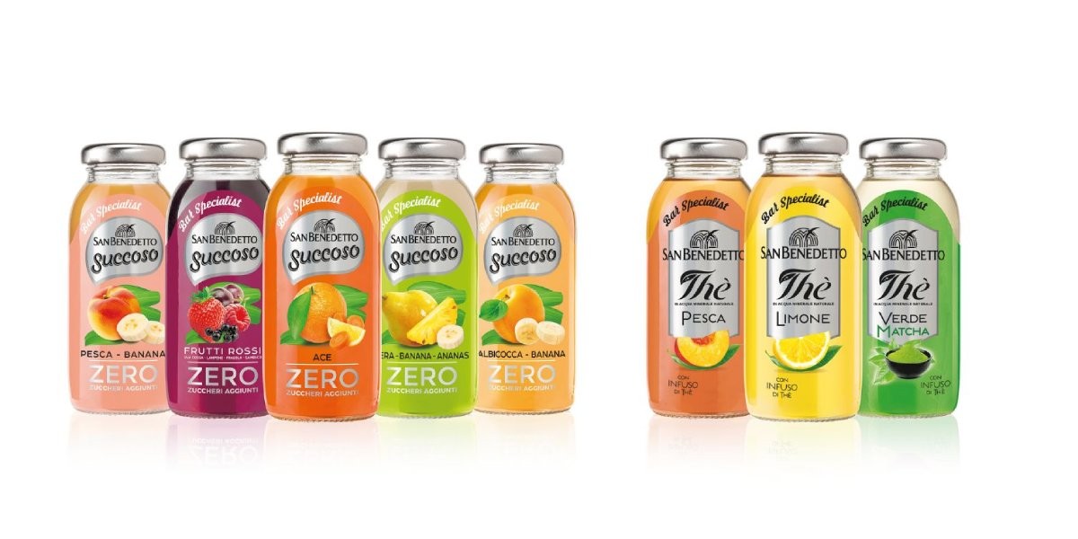 Si chiama San Benedetto Bar Specialist la nuova linea di bevande a base frutta e tè sviluppata da San Benedetto per il canale bar. La gamma comprende le tipologie San Benedetto Succoso Zero e Thè San Benedetto nel formato in vetro da 0,20l con tappo twist off.