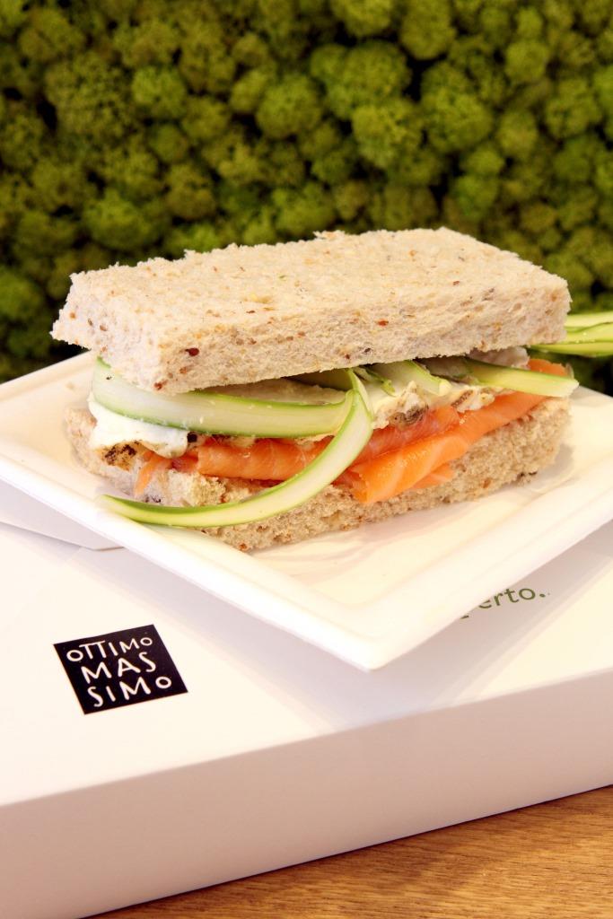 Innovazione, cura per l’ambiente, creatività e interesse per l’arte: il connubio fra Ottimomassimo fast gourmet e la spazio-libreria Open di Milano si basa su queste caratteristiche comuni. Infatti Ottimomassimo, con la sua offerta di qualità di panini, piatti e insalate (anche con servizio di consegna a domicilio), oltre alla sede di via Spadari (nei pressi di piazza Duomo), ha aperto un secondo punto vendita anche in Viale Monte Nero (Porta Romana), all’interno di Open. Quest’ultimo è uno spazio molto particolare: si tratta di un grande open space vetrato – non affaccia su strada ma è al primo piano di un palazzo – che supera il concetto tradizionale di libreria dove si entra, si acquista e si va via, proponendosi invece come luogo in cui “stare”. Nella grande superficie a elle (di cui il bancone di Ottimomassimo occupa il lato interno), agli scaffali pieni di libri si alternano zone con divani e altre sedute, in cui la gente legge (giornali ed e-reader sono a disposizione) o naviga, e zone per gli eventi e i corsi che si susseguono a ritmo serrato. C’è anche un’area dedicata al coworking, che contribuisce a fare di OPEN un luogo frequentato a tutte le ore.