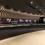 L’illuminazione genera scenari morbidi ed accoglienti, è concentra sul banco, esalta la vela di doghe, diventa protagonista nelle pareti retroilluminate che incorniciano le bottiglie di vino Santa Margherita come sculture.