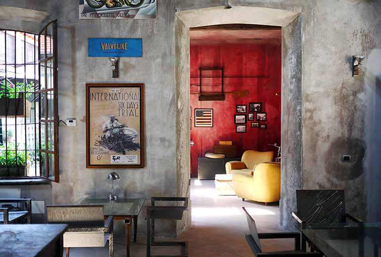Le Fonderie Milanesi sono inserite in un contesto felice della vecchia Milano, cortili di artigiani e officine sono antecedenti l’ingresso formato dal grande portale in ferro come quello dei tipici magazzini milanesi. Sostanzialmente è una vecchia cascina che nel tempo si è trasformata in fonderia e ora in un bucolico ristorante caffetteria. Dalle colazioni alla cena con una bella corte interna con tavolini e sedute comode. Lo stile è quello del déco contemporaneo che sperimenta la fusione di diversi stili all’interno dello stesso spazio. I pezzi di differenti, per produzioni, anni, stili e colori coesistono creando una commistione divertente. L’elemento di valorizzazione del luogo, nel caso delle Fonderie, è l’atmosfera domestica. Gli stili e la disposizione degli arredi riecheggia quelli che ritroviamo nelle nostre case, i quadri alle pareti i tavolini e i divani comodi.