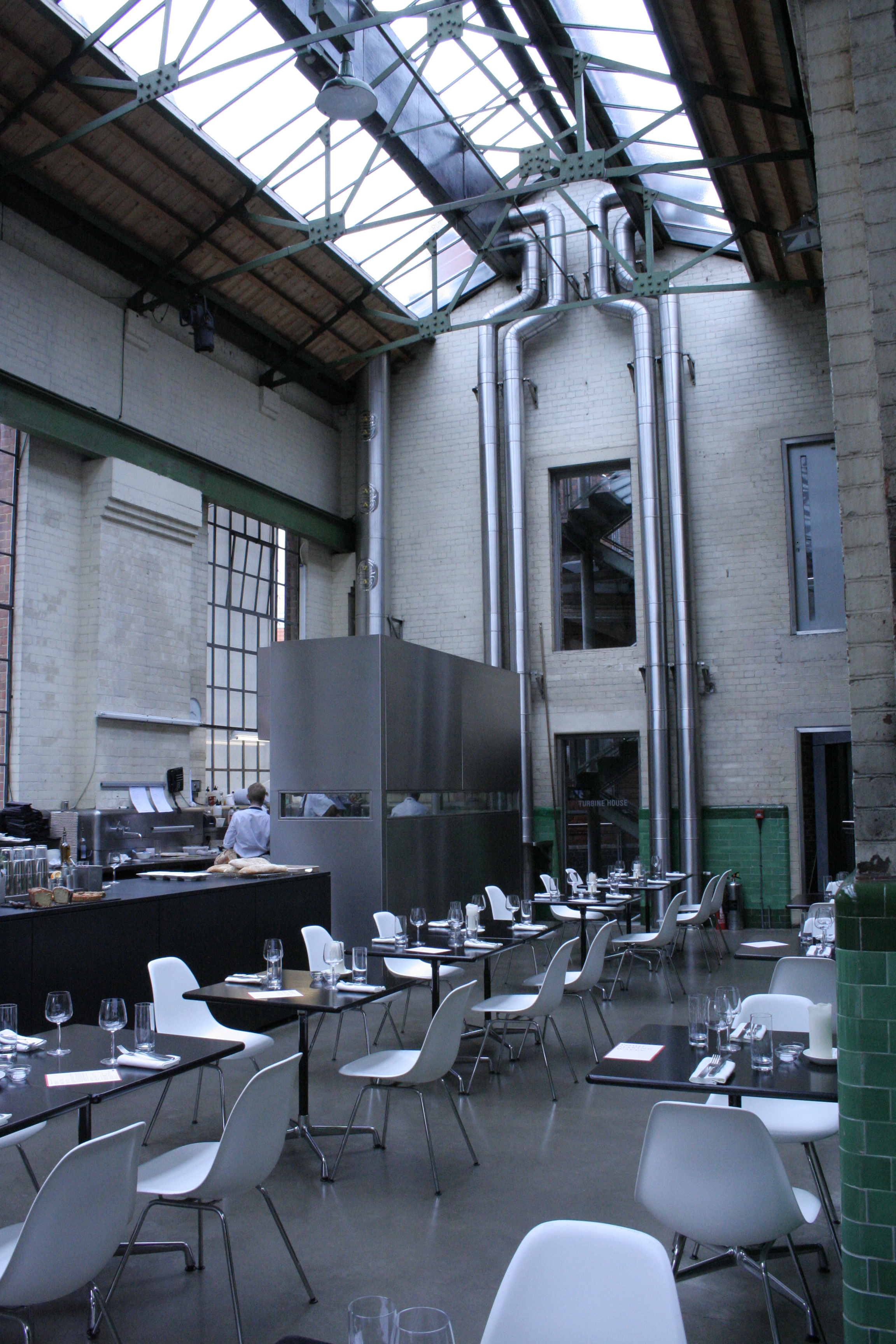 The Wapping Project nasce dall’idea speciale di creare un luogo di cultura: uno spazio in cui mangiare, leggere e vedere mostre, vicino al fiume a metà strada tra la City di Londra e Canary Wharf era situato all’interno di quello che un tempo era la Wapping Hydraulic Power Station. Lo stile è puro vittoriano, le piastrelle in ceramica verde, i mattoncini rossi all’esterno, i macchinari in ferro arrugginiti, i bulloni e la grande cisterna trasformata in installazione permanente. Qualche anno fa, potevi farti un giro in una barca a remi nella piscina di olio, la cisterna è stata trasformata in un serbatoio di benzina per l’istallazione…. I creatori di questo magico luogo del 1890 hanno intelligentemente mantenuto in eredità tutti gli elementi esistenti lasciando non solo lo scheletro esistente ma anche alcuni elementi che sono diventati “arredi” e trasformati in icone contemporanee. Le tubazioni a vista, le turbine, le catene e le grandi valvole fanno da sfondo alle fotografie e ai quadri e in maniera involontaria vanno a rafforzare la creatività dell’installazione. Mangiando piatti sofisticati ci si accorge di essere in un posto davvero speciale: uno chic industriale / urbano nella sua forma più potente.