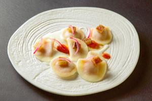 Uno chef tradizionale, ma contemporaneo: mi rifaccio alla cultura gastronomica classica e la rivisito in chiave moderna. Per esempio, nel nostro All’Oro il concetto dei cappelletti in brodo viene riproposto in modo asciutto, ovvero con il liquido direttamente all’interno della pasta - rigorosamente tirata a mano -, serviti con un cucchiaio forato ideato da me. Non utilizzo né gelatine né addensanti: ad addensare le parti ci pensano le parti più ricche di collagene - ginocchia, muscolo, copertina - messe nel brodo. Lasciato per pochi secondi a temperatura ambiente, il consommé sviluppa una gelatina naturale. Insomma, applico una tecnica naturale dall’effetto sorprendente.