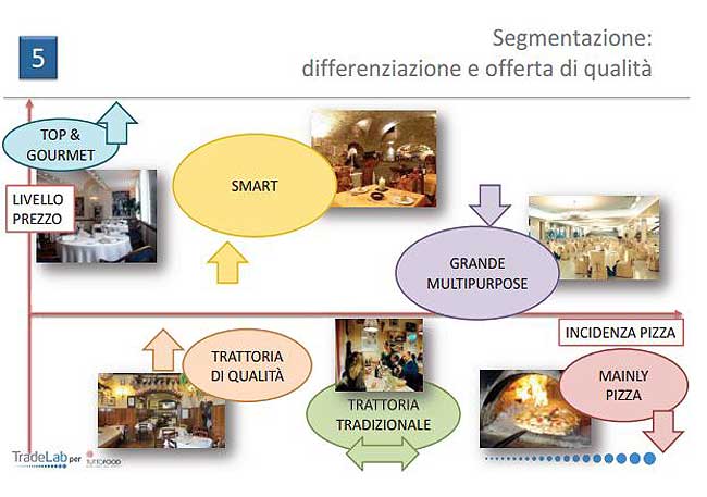 IL FATTORE PREZZO - Gli italiani sono ancora più che disposti a mangiare fuori casa, mantenendo le occasioni del pranzo (per motivi logistici e funzionali) e della cena (e qui il tema della socialità prevale). Però, e in questo la crisi ha influito, sono più attenti nella scelta, frequentano meno tipologie di luoghi, e preferiscono quelli a basso costo (bar, pizzerie, in leggero declino, e ristoranti sotto i 30 euro) e di passaggio (centri commerciali, aree di servizio, stazioni e fast food). Prediligono però anche la varietà dell’offerta, e sono più curiosi ed esigenti che in passato: per una sorta di “effetto Masterchef” sono attenti alla qualità del piatto. Chiedono tutto: qualità, convenienza e anche esperienza e attenzione agli elementi relazionali.