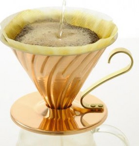 La struttura del V60 ha un elemento molto importante per la preparazione corretta della bevanda. Nella parte interna, infatti, dove posizioniamo il filtro, il cono ha una superficie a nervature, disposte a spirale, che assicurano un’estrazione omogenea del caffè convogliando la parte liquida dai lati al foro centrale sottostante. Lo strumento è disponibile in due misure standard, da due a quattro tazze di caffè alla volta e in diversi materiali, come plastica, vetro, ceramica e metallo. Una nota importante riguardo ai filtri, che generalmente sono coni di carta: prima di versare il caffè macinato, dobbiamo bagnare il filtro con acqua calda, per eliminare il rischio che un leggero sapore di carta venga rilasciato in tazza.