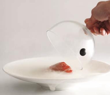 aroma ‘bruciato’ agli alimenti, nel secondo ai drink. Gli affumicatori possono essere utilizzati insieme a una serie di accessori quali campane di vetro o plexiglass per servire al tavolo piatti e cocktail e quindi garantire un notevole effetto scenografico. Vi consigliamo di provarlo anche durante show cooking o se disponete di cucine a vista. E’ bene ricordare che oltre alle citate campane, gli affumicatori possono essere utilizzati insieme a un piccolo disco di plexiglass, da appoggiare sopra al bicchiere, o a teglie di alluminio per l’affumicatura di cibi in cucina. Un ultimo importante accessorio è la station, per lavorare in orizzontale senza che la resina entri nel motore. Di certo eleganza e creatività vengono premiate ed esaltate dall’utilizzo di questo attrezzo.